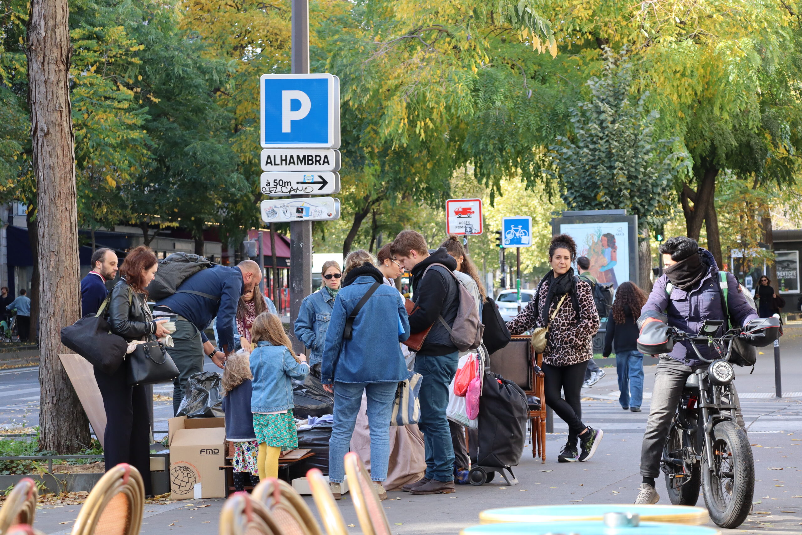 Un samedi ensoleillé, dans le 11 ème arrondissement de Paris, en l’attente de charger le camion, les déménageurs ont déposé meubles et mobiliers sur le trottoir et ce pour le plus grand plaisir des riverains et des passants qui ,par curiosité, ont commencé à regarder, fouiller et dénicher ce qu’ils peuvent récupérer ce qui créa une brocante.